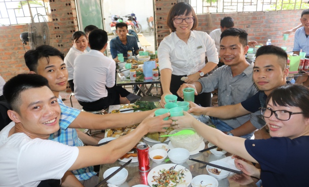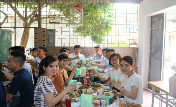 Sau buổi gặp mặt, công ty có tổ chức 1 bữa cơm thân mật giữa các TTS với giáo viên và cán bộ nhân viên trong công ty, cùng nhau hàn huyên, ôn lại những kỷ niệm đáng nhớ có được trong quá trình học tập và rèn luyện tại VILACO cũng nhưng 3 năm ctac tại Nhật.
